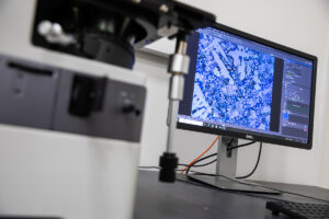 Pomocí světelné mikroskopie provádíme hodnocení struktury kovů a měření tloušťky vrstev, jako jsou povrchové úpravy, kalené vrstvy nebo ochranné povlaky. Tyto analýzy slouží k ověření kvality technologických procesů a životnosti materiálů.